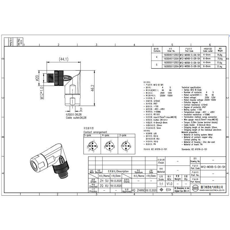 为您提供商品圆形连接器 唯恩 M12 5针 M05B WAIN 带屏蔽 公头的详细介绍,