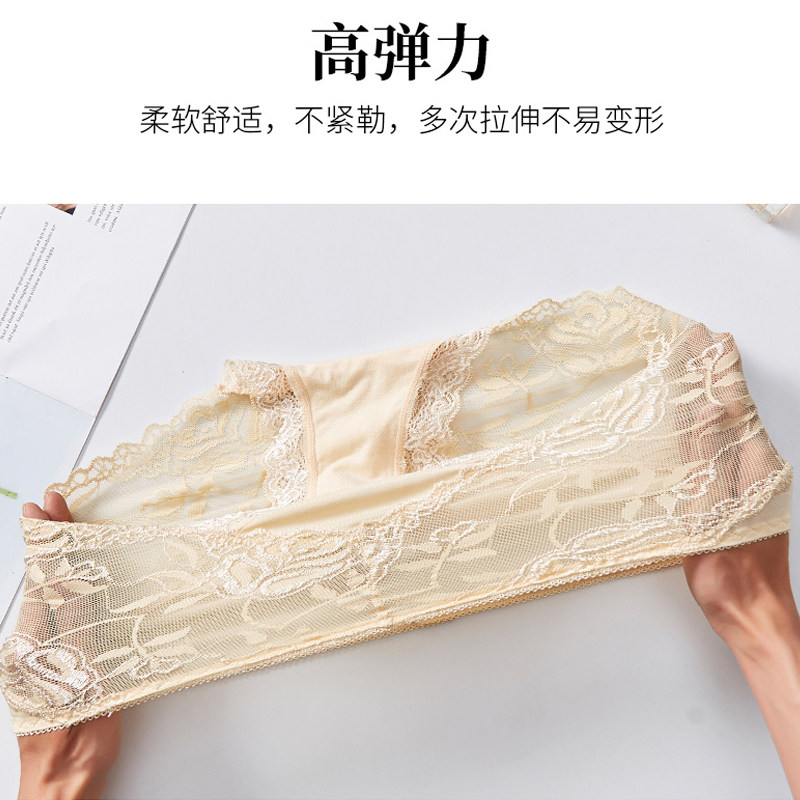 为您提供商品提臀三角短裤 女性感中高腰网纱透明y无痕纯棉裆透气大码 蕾丝内裤的详细介绍,