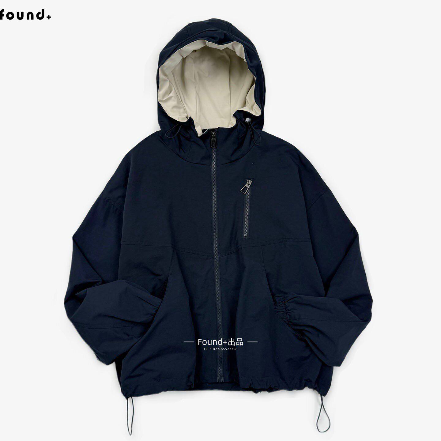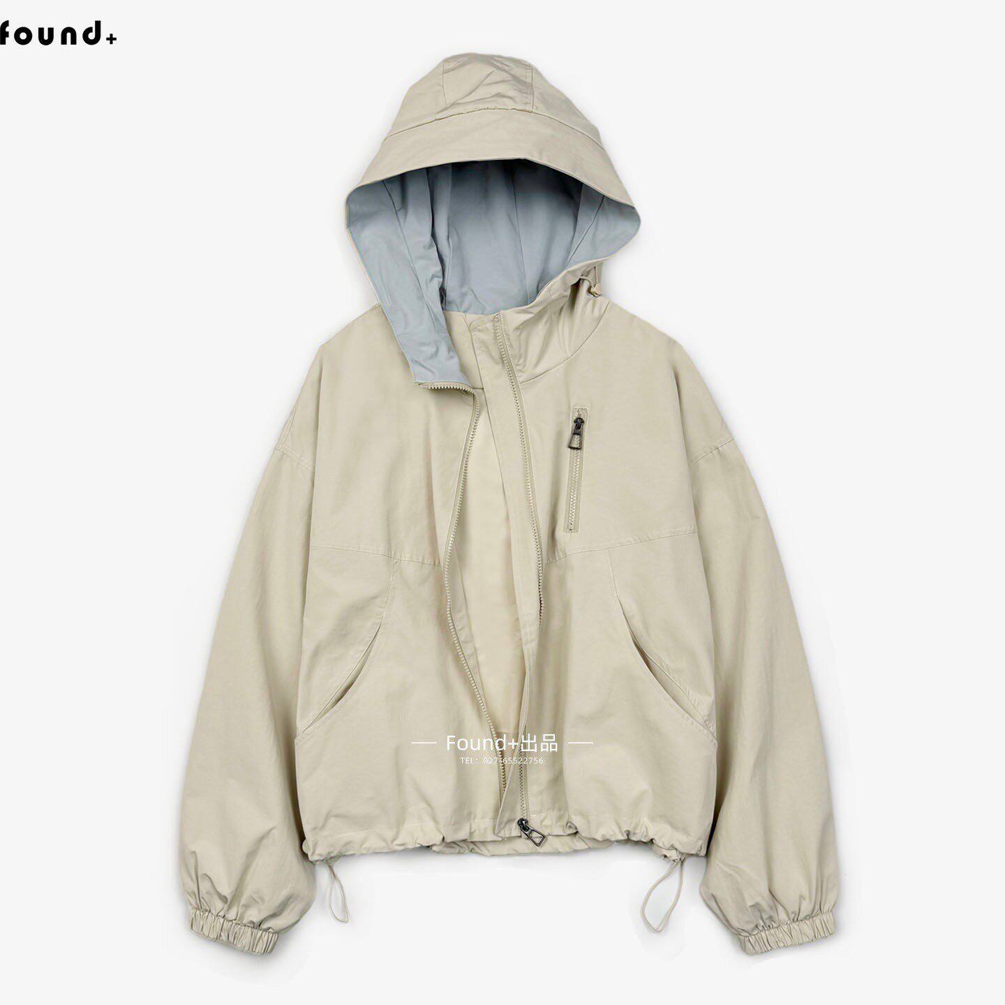 高级浅雾霾蓝色山系外套女宽松工装 W15 抽绳连帽小个子夹克2026春