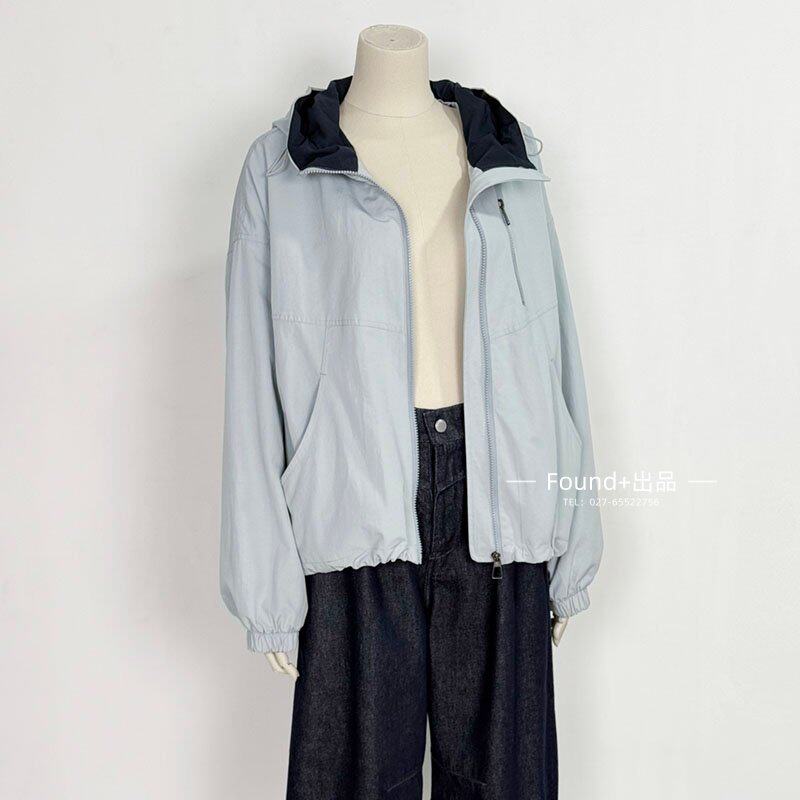 为您提供商品高级浅雾霾蓝色山系外套女宽松工装 W15 抽绳连帽小个子夹克2026春的详细介绍,