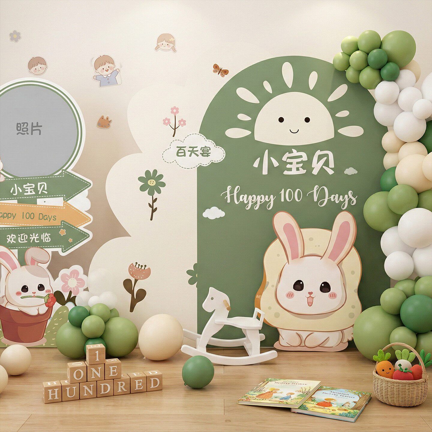 宝宝可摇晃生日派对装 饰 扮布置套餐拍照照片墙纸欢迎牌周岁生日装