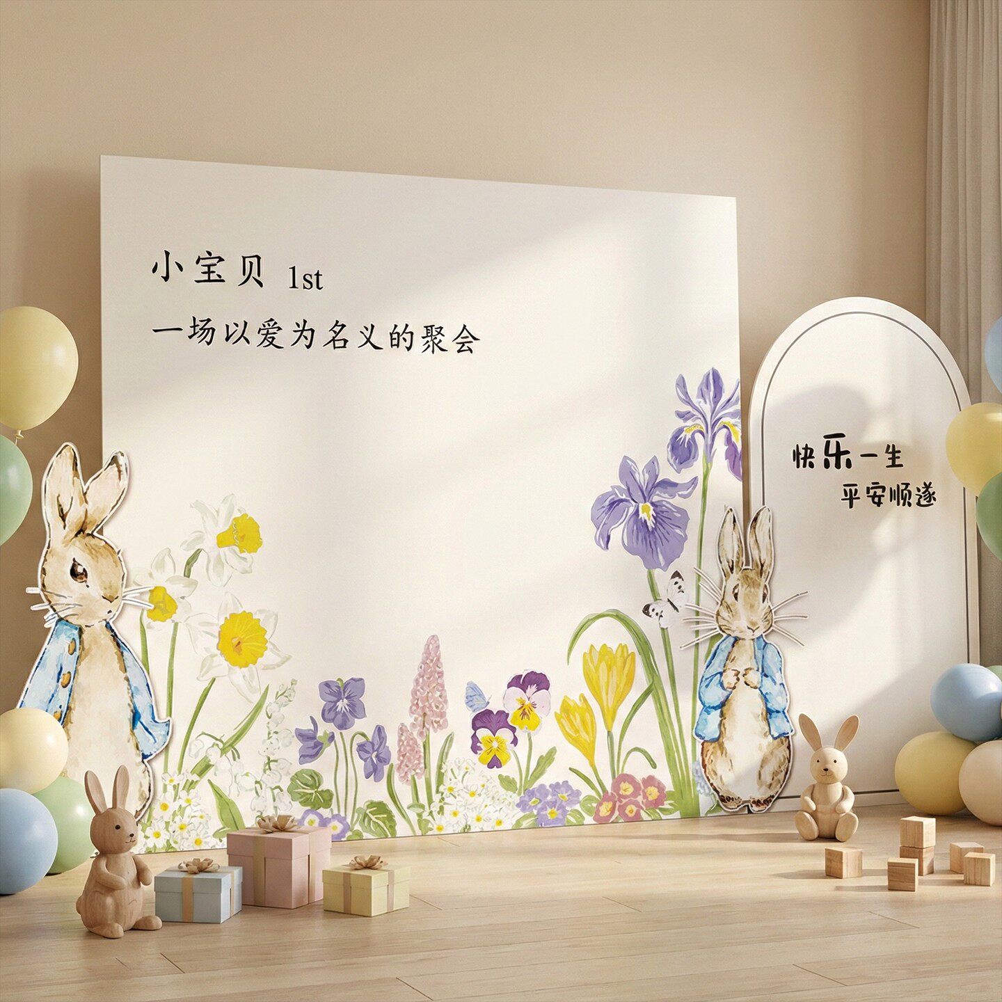 饰布置套餐气球拱门kt板背景墙 森林动物兔宝宝周岁百天生日派对装