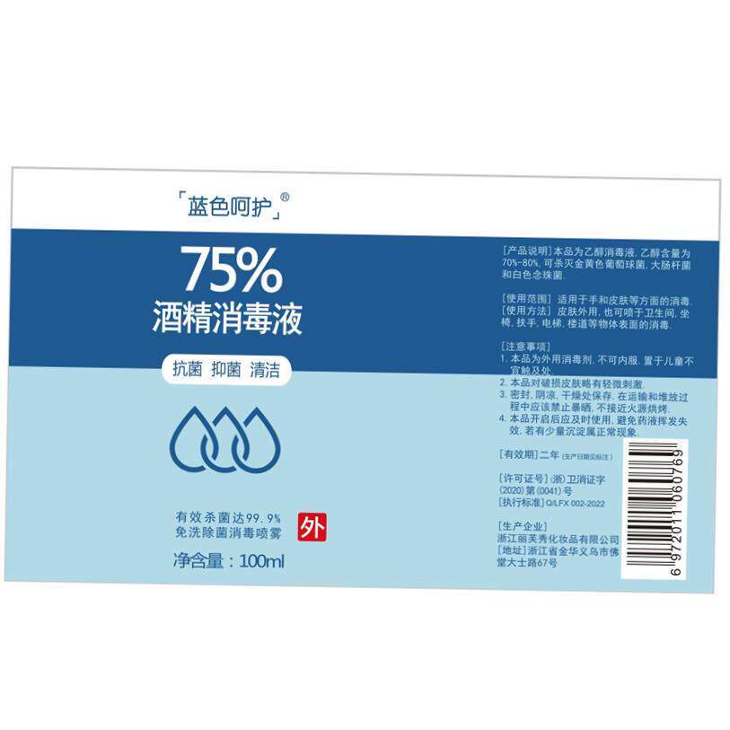 75%酒精喷雾消毒剂100ml由