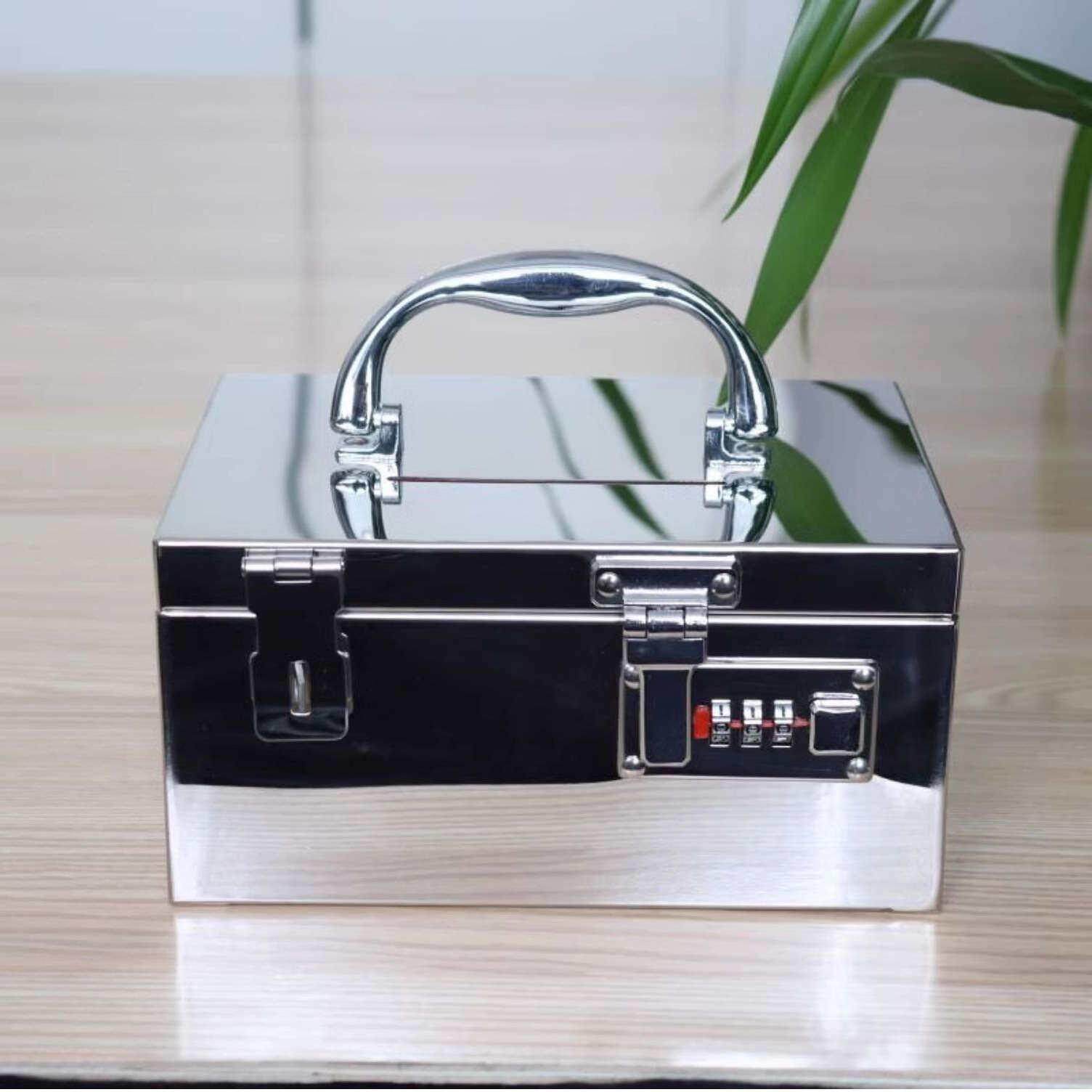 家用存钱箱罐双锁钱箱票证收纳盒 不锈钢收纳箱带锁密码由