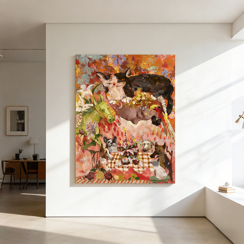 多巴胺风动物抽象装 饰画客厅玄关小众高级感艺术挂画 动物派对由