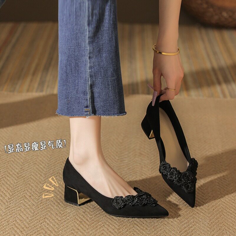 小众设计女款 33912 213B气质高级感百搭粗跟尖头2026秋季 新款 单鞋由