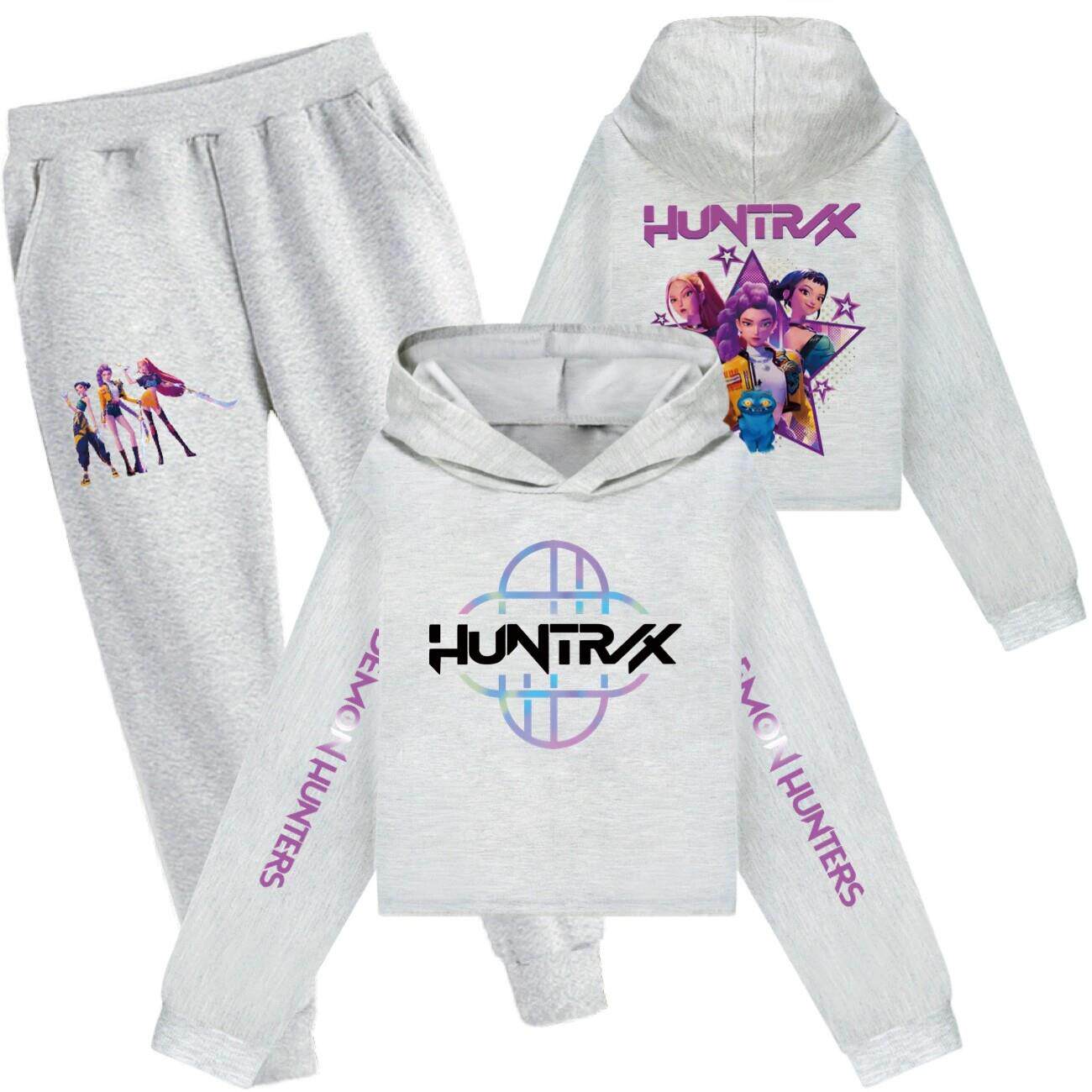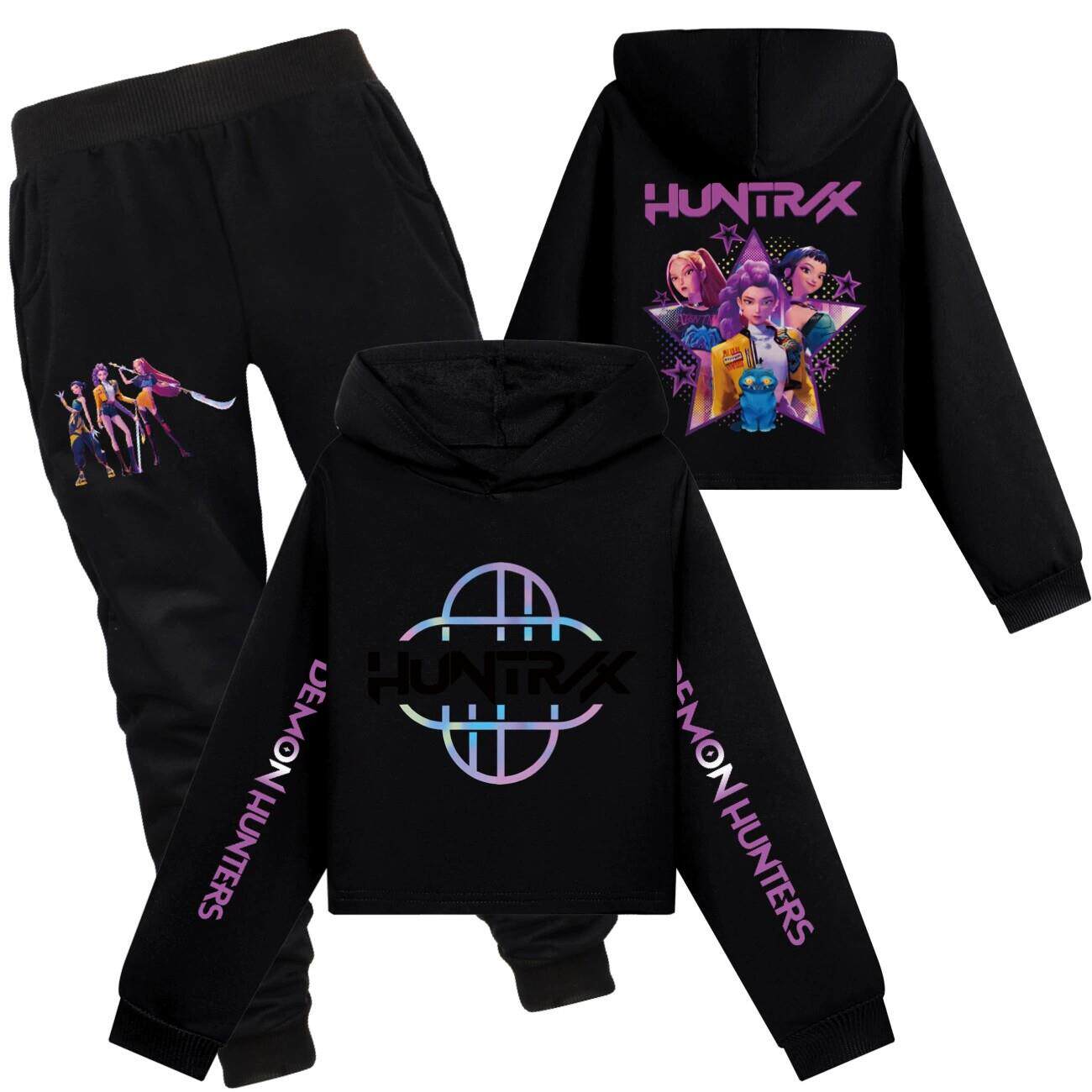 Kpop猎魔女团时尚 儿童秋冬卫衣 女童半腰短卫衣鲁米印花运动套装