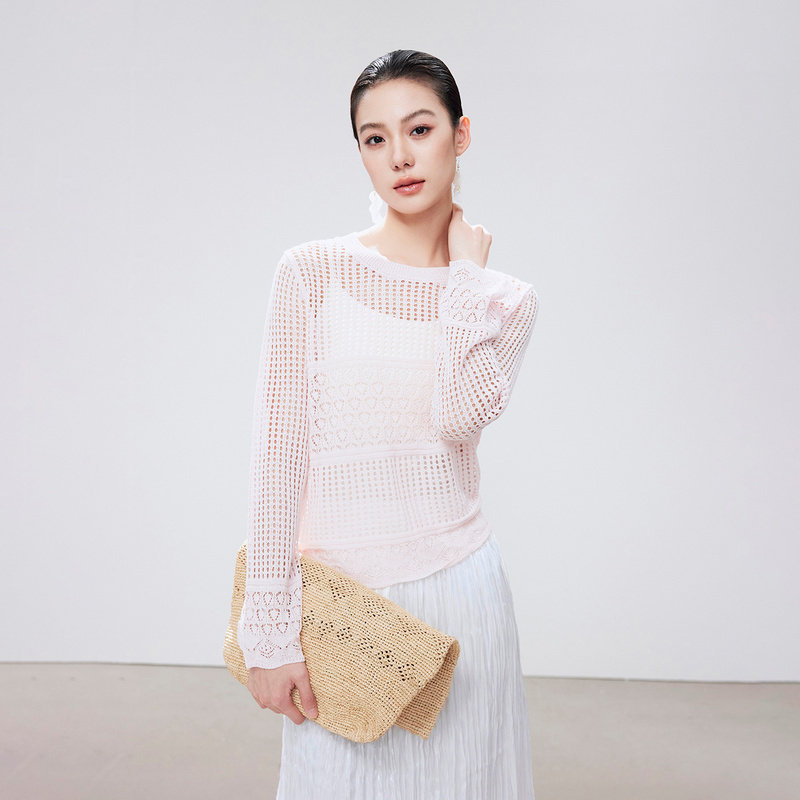 重工镂空毛衫 显瘦 女MOFAN摩凡2026夏新款 栀子白轻奢莱赛尔针织衫