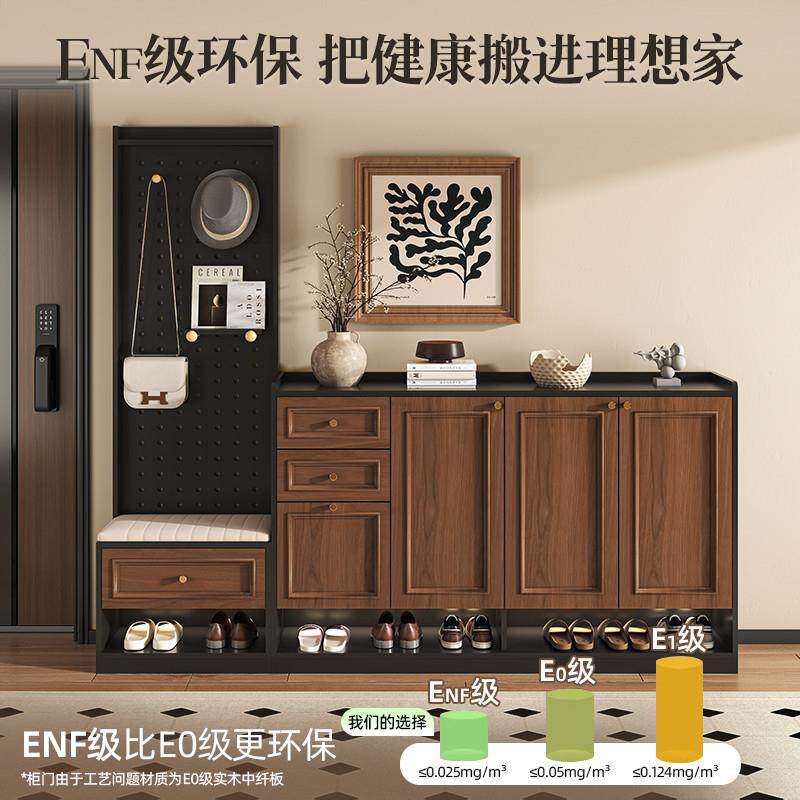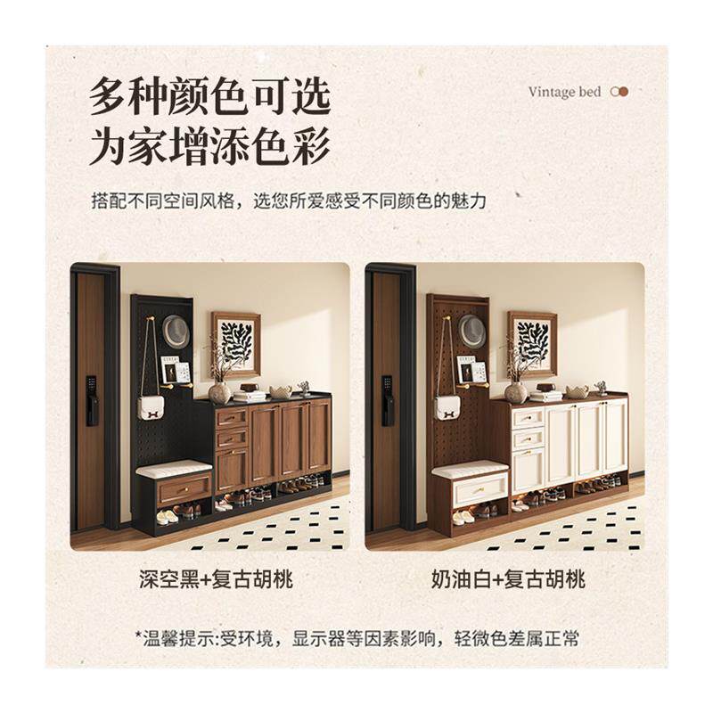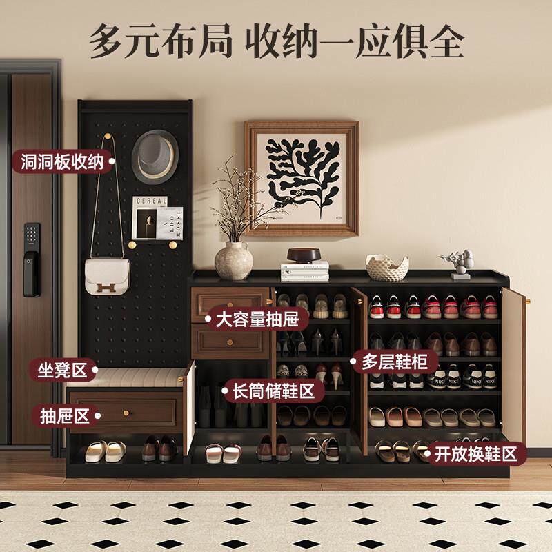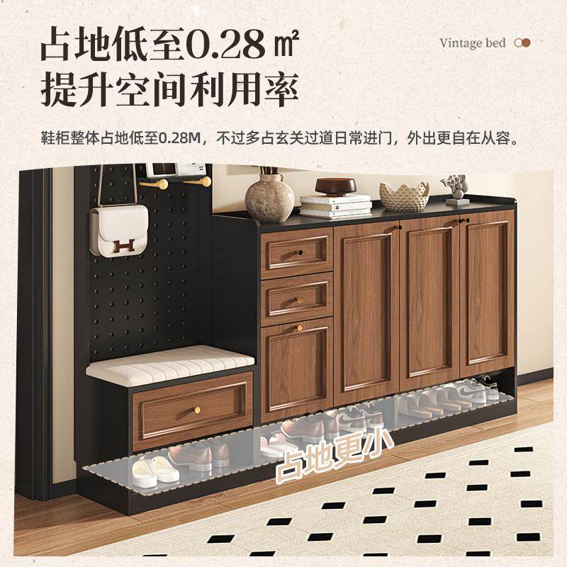 鞋 柜家用门口入户衣帽架坐凳一体玄关柜洞洞板收纳柜 定制法式 新品由