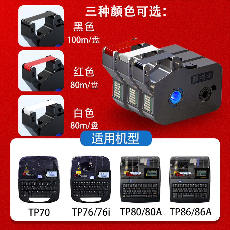 机TP 官方正品 硕方线号机色带TP70 66i 76i R1002B黑色白色红色碳带 打号机号码 套管打印机打码 60i