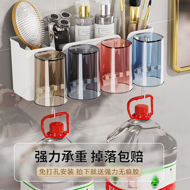卫杯间电动家庭 速发牙刷置物架打免孔刷牙杯漱口生挂墙架子壁挂式