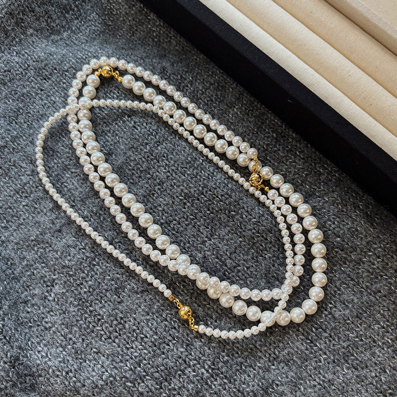 Pearl Clavicle Magnetic Round French Women Buckle Necklace由