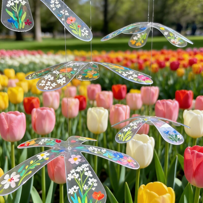 幼儿园春日塑料花朵片吊饰PVC环创挂饰绘画空中垂吊艺术diy美工区