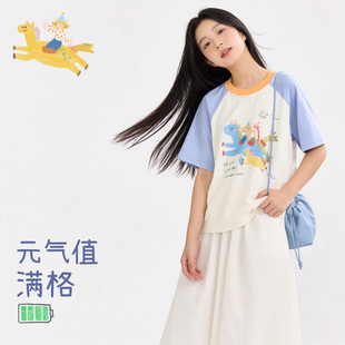 儿童上衣中大童卡通打底衫 女童短袖 T恤26夏季 新款 青少年宽松童装