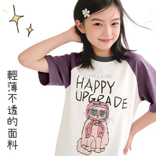 儿童上衣中大童卡通打底衫 女童短袖 T恤26夏季 新款 青少年宽松童装由