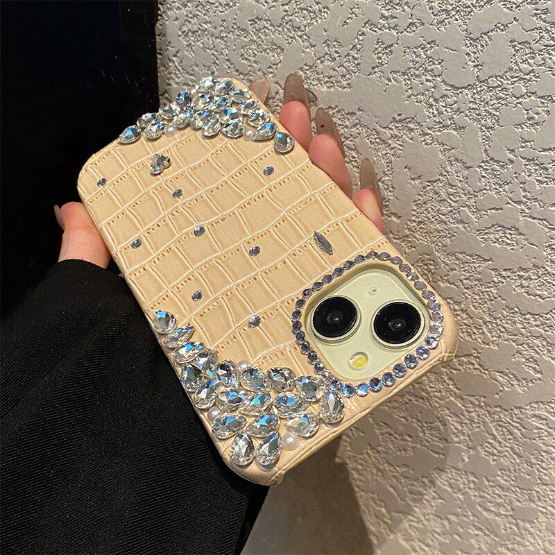 黄色格子鳄鱼纹适用苹果17promax手机壳华为pura80荣耀x70i小米17promax奢华vivos50水钻opporeno15闪钻钻石p