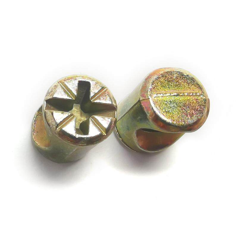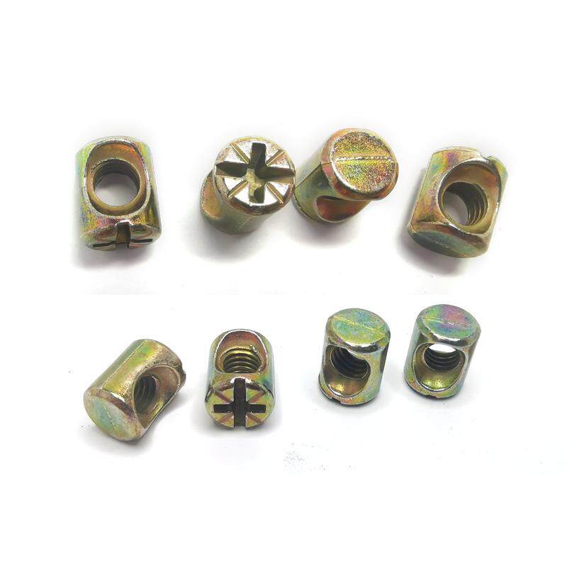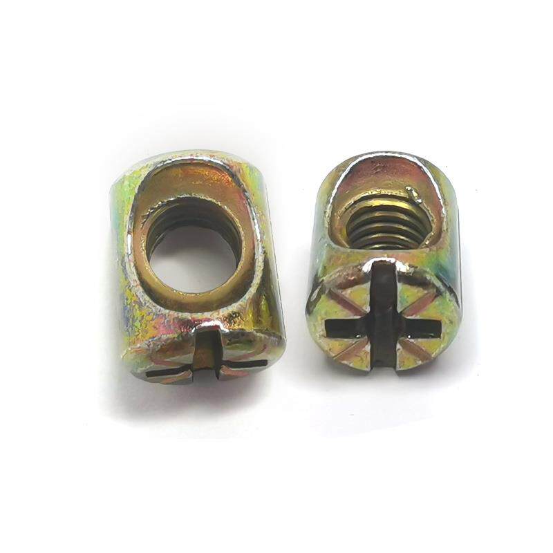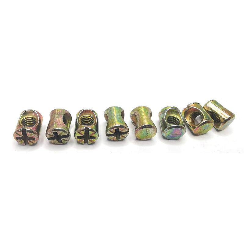 十字型锁紧螺丝帽M6镀彩锌圆柱二合一家具连接中心螺母DIN985碳钢
