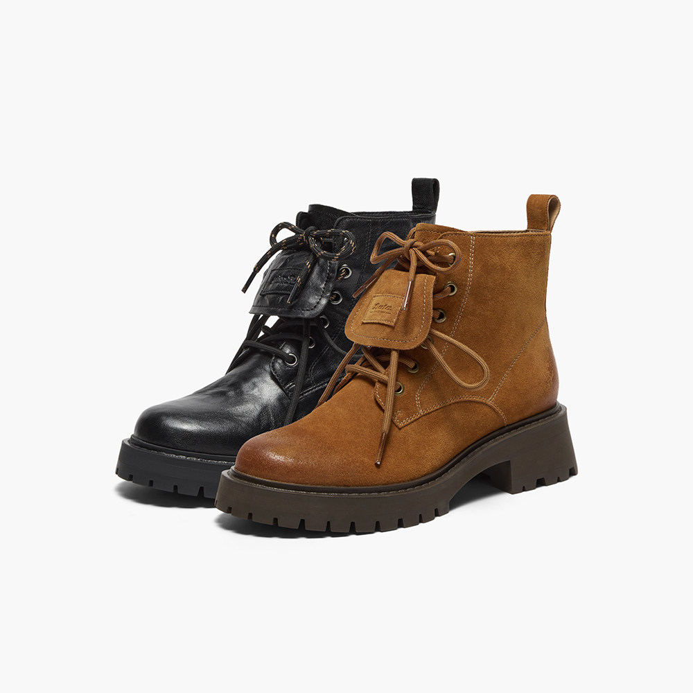 骆驼马丁靴女鞋 新款 工装 大黄靴英伦风厚底户外登山短靴子 2026春季