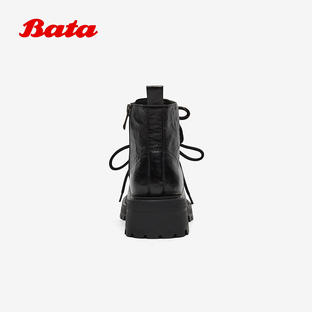 王子奇同款 冬商场加绒短筒靴女WIG29DD5 Bata英伦风马丁靴女款