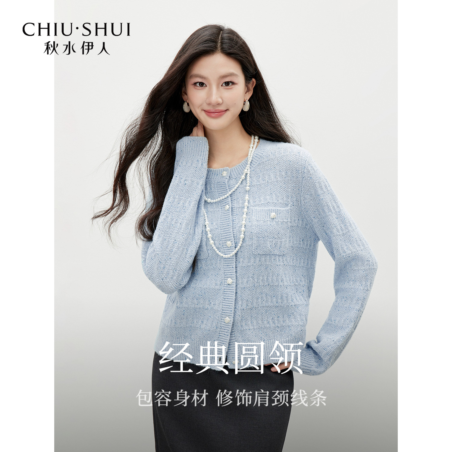 女装 秋水伊人圆领针织开衫 2026春季 新款 打底针织上衣 气质通勤经典