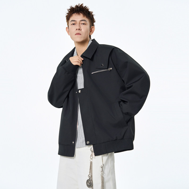 夹克外套男秋季 潮牌宽松休闲百搭翻领上衣服 复古cleanfit短款 美式