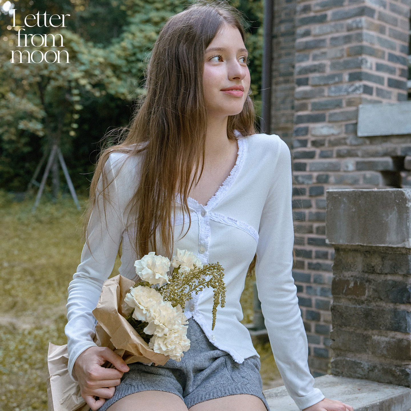 moon交叉蕾丝V领开衫 半途鹅飞同款 Letter from 上衣 25休闲长袖