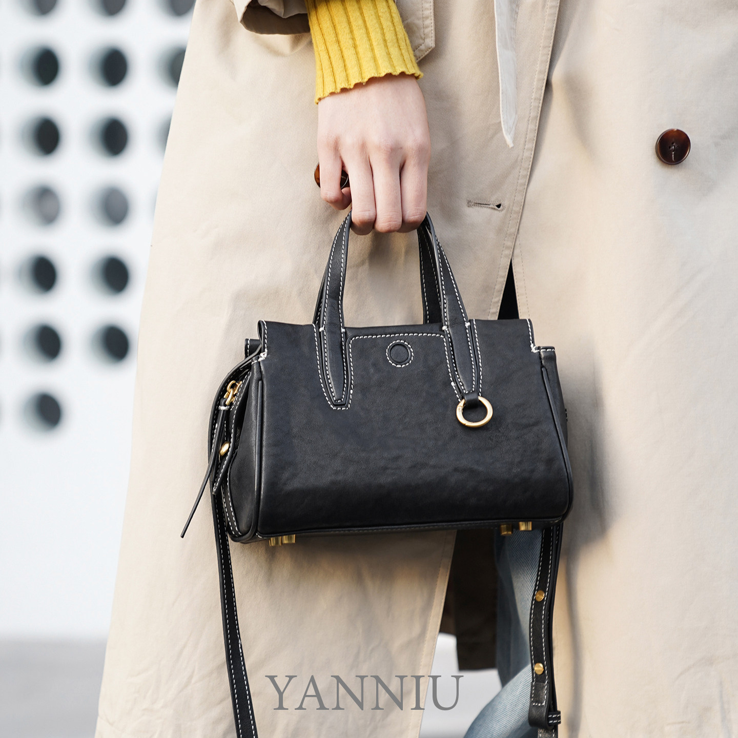 岩牛水晶植鞣头层牛皮手提大包小众高级感小包单肩斜挎包真皮女包由