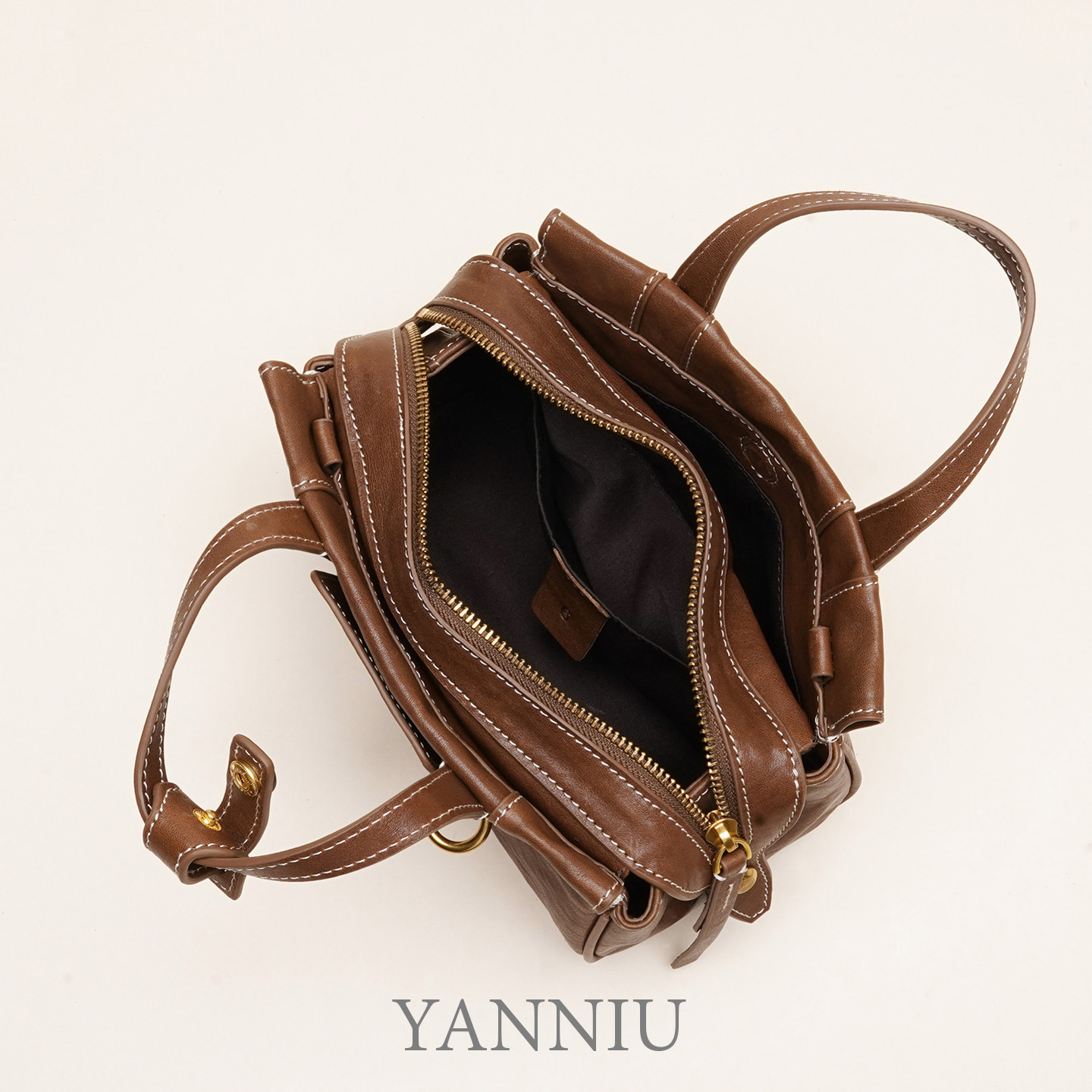 岩牛水晶植鞣头层牛皮手提大包小众高级感小包单肩斜挎包真皮女包
