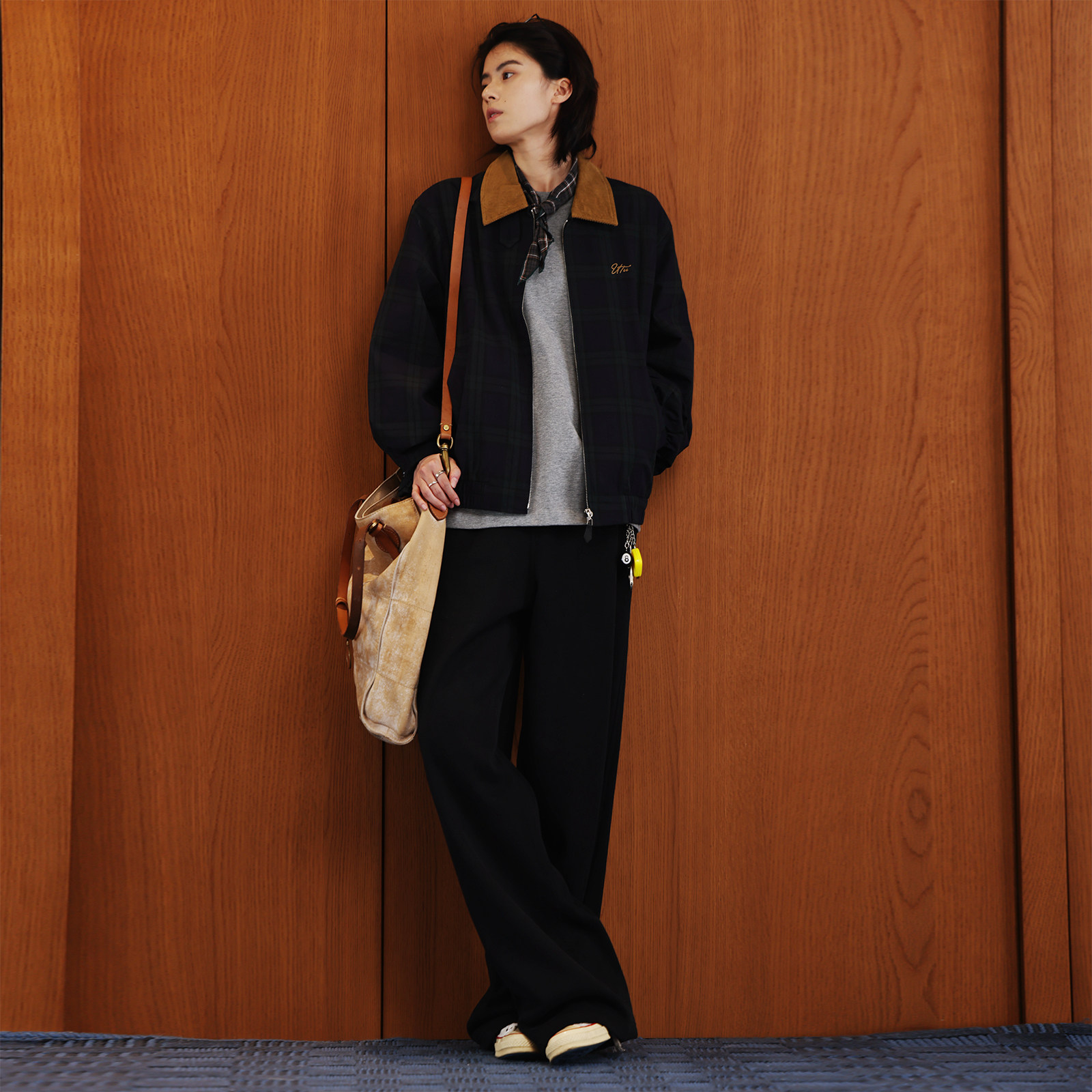 复古墨绿格纹灯芯绒翻领撞色夹克中性风外套男女 Nobodyknows美式由