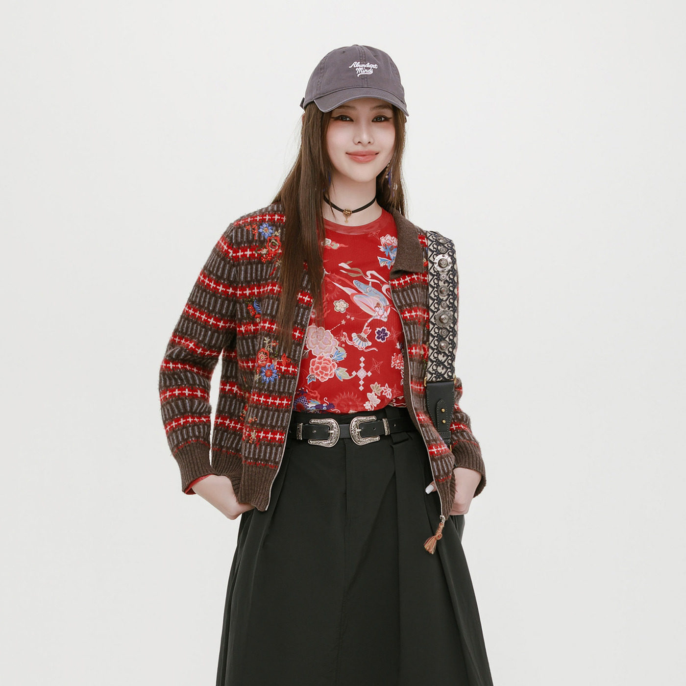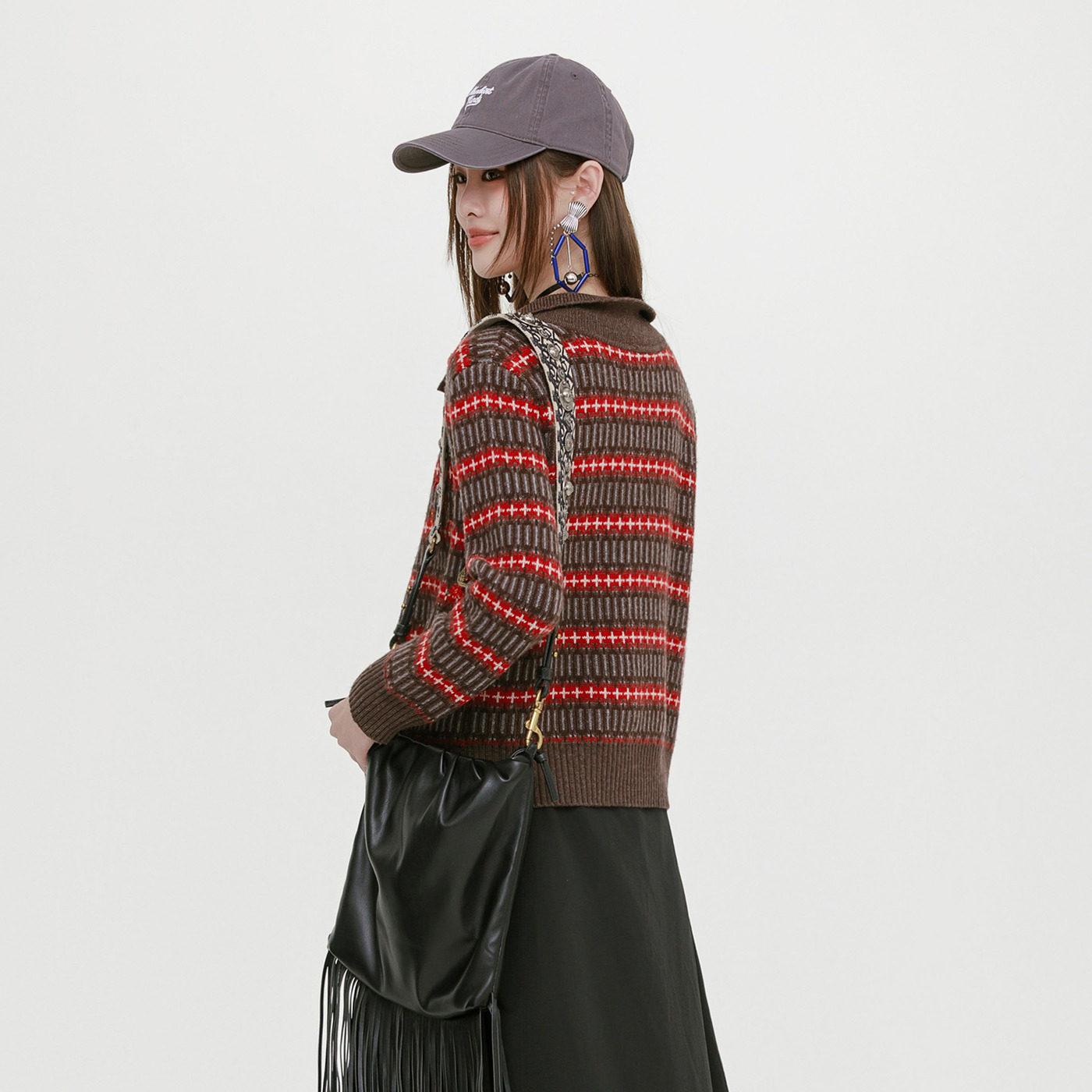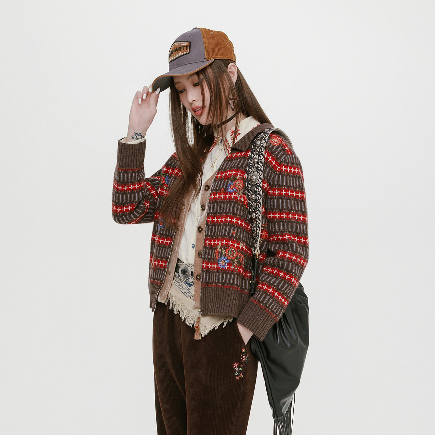 渔牌女毛衣女款 秋季 文艺复古翻领毛针织衫 外套FGHC3635 2025年新款