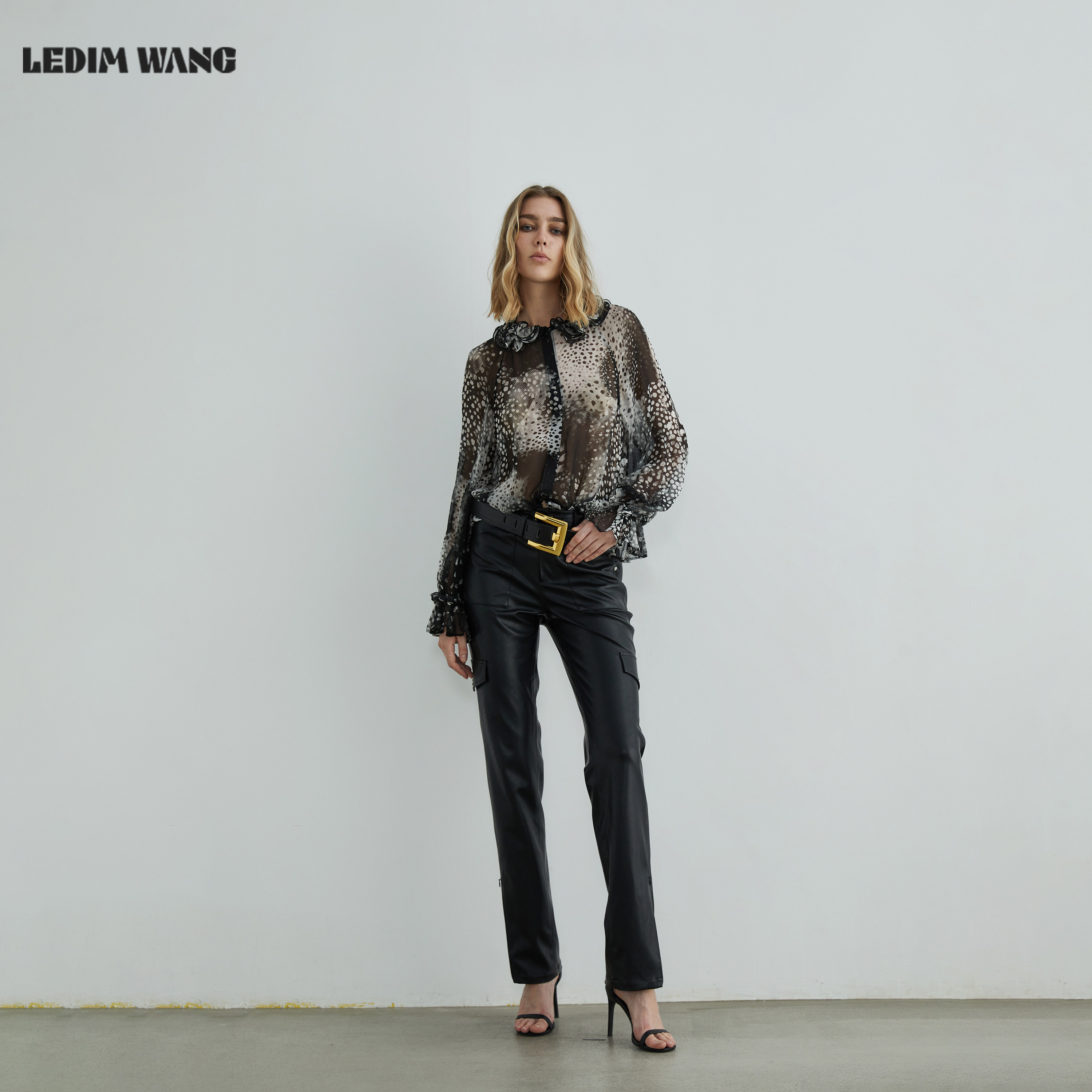黑色紧身长裤 LEDIM 新款 女秋季 WANG黑标 蛋白皮开叉直筒皮裤由