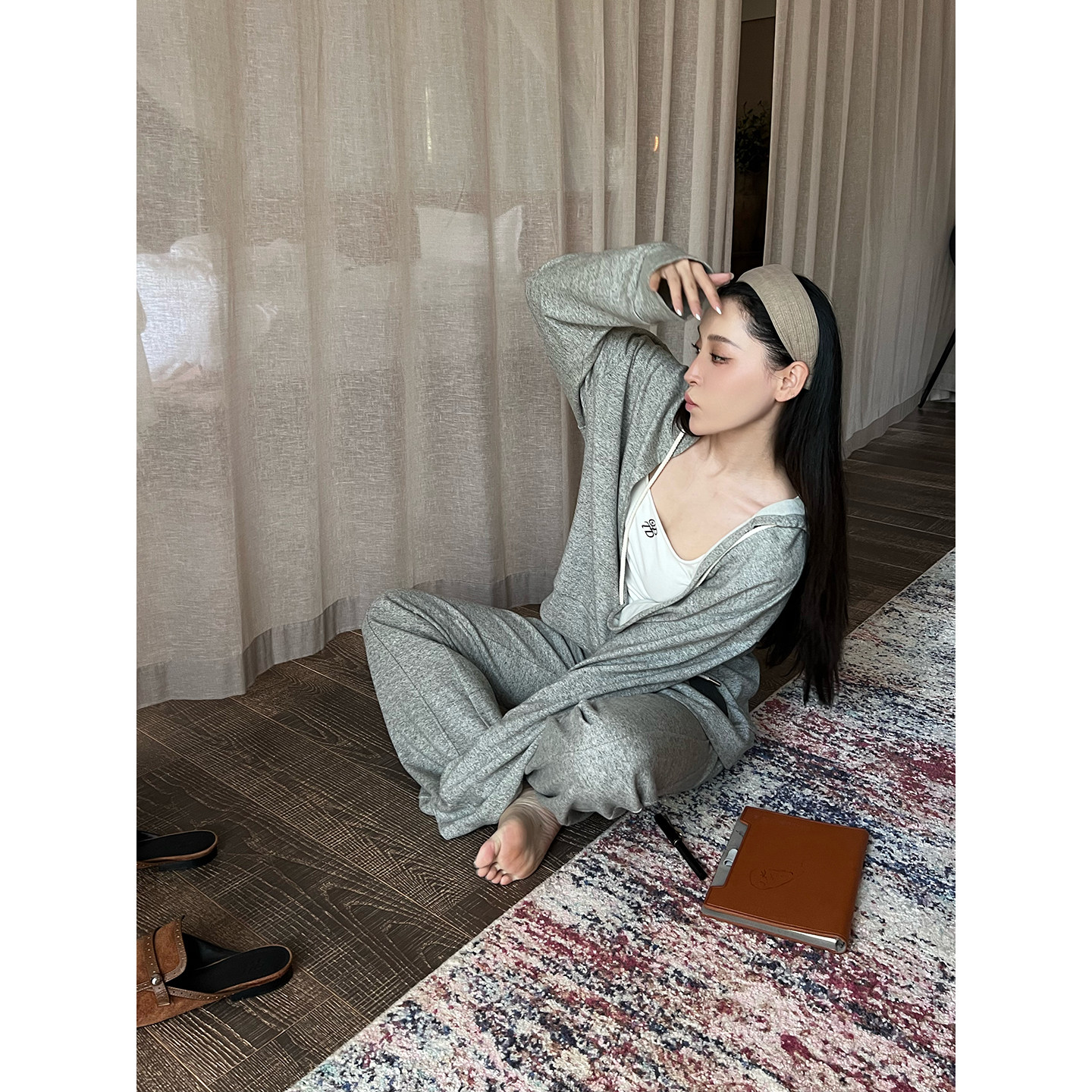 深V领套头连帽卫衣 ODTD 设计师品牌 25秋冬新品 针织喇叭长裤由