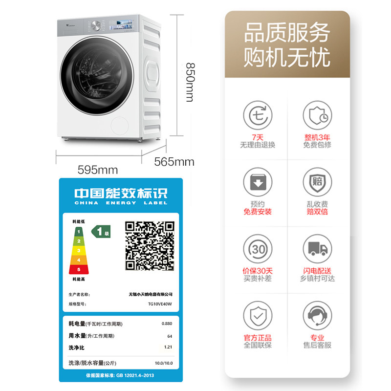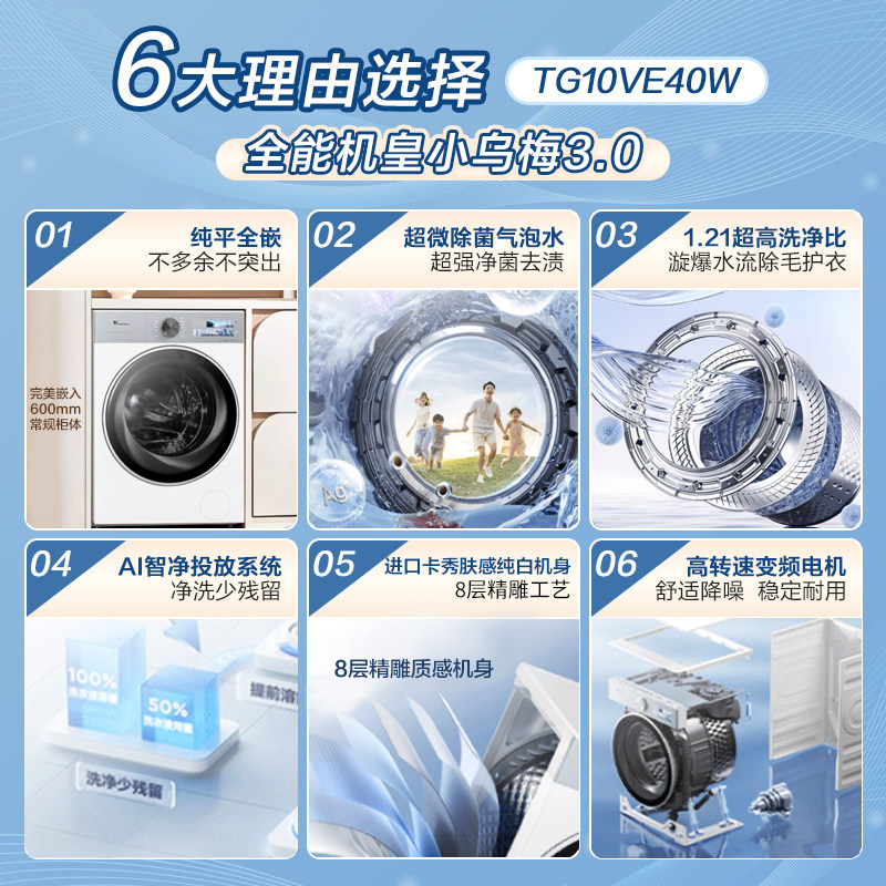 为您提供商品小天鹅小乌梅3.0家用10KG全自动变频滚筒洗衣机VE40W 纯平全嵌的详细介绍,