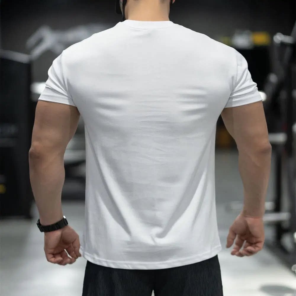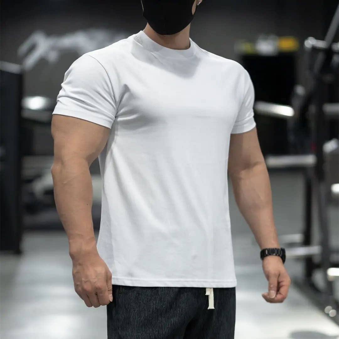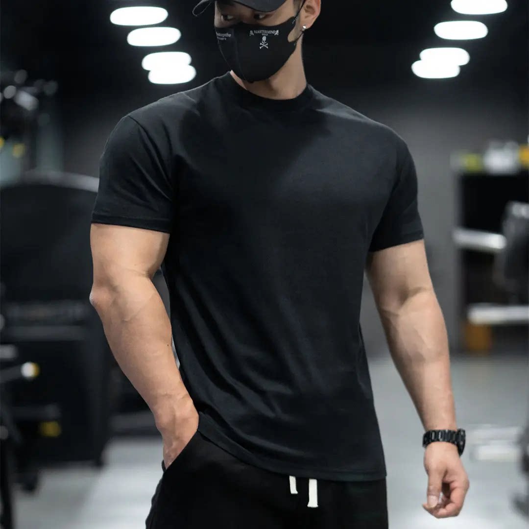 健身衣服大码 美式 收袖 口显肌肉冰丝透气速干弹力T恤男士 运动短袖