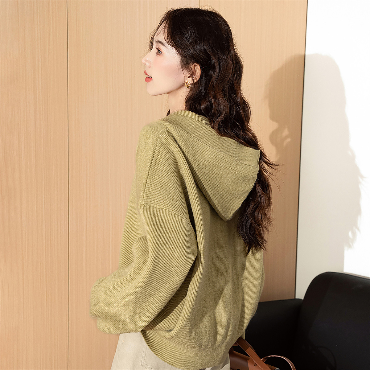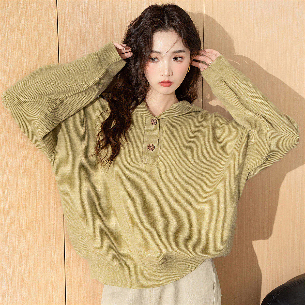 为您提供商品女春秋百搭毛衣女小个子潮 唐狮秋冬简约半开襟连帽套头针织衫的详细介绍,