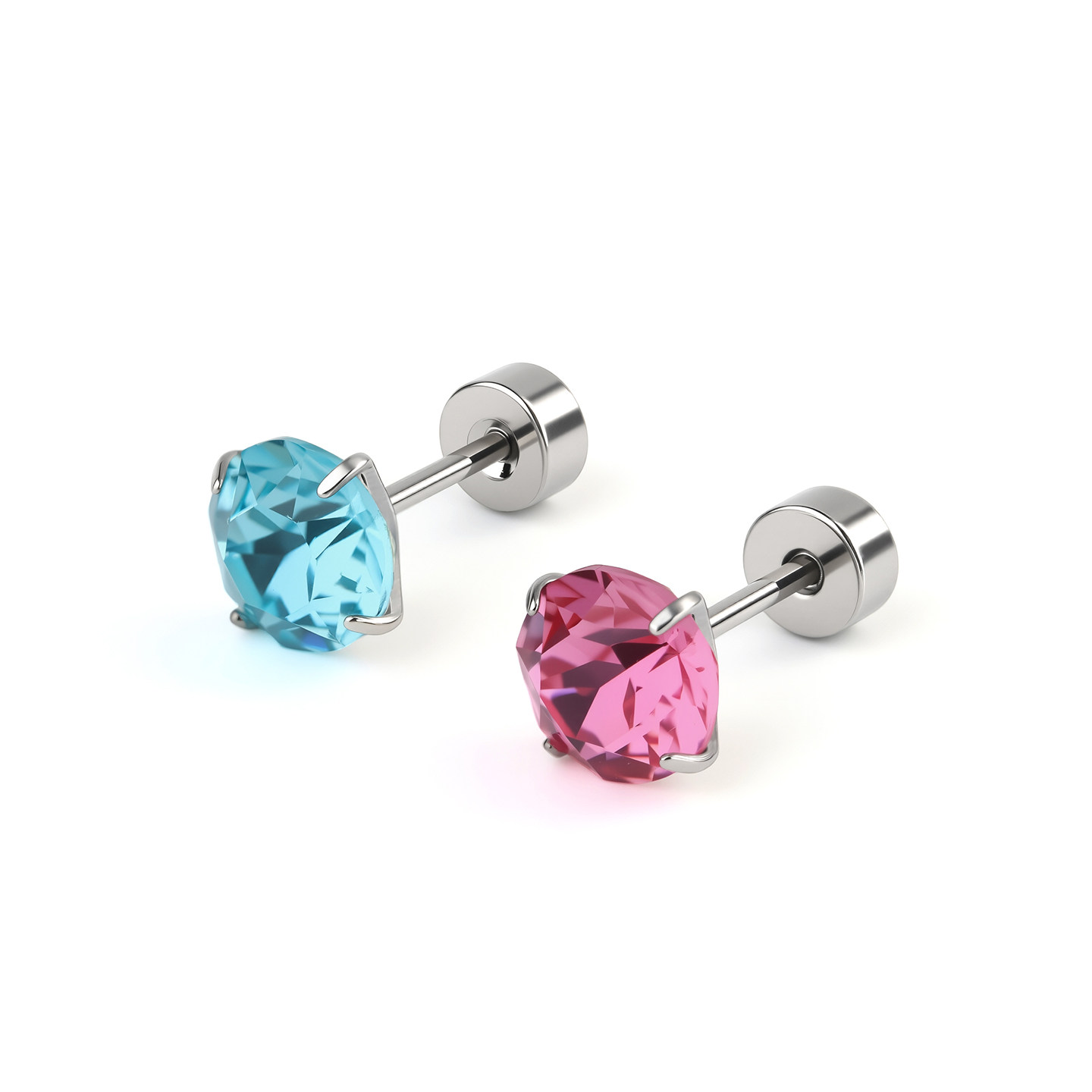 8mm爆闪S家华子耳钉F136医用钛合金外螺纹防过敏耳垂耳骨耳蜗钉