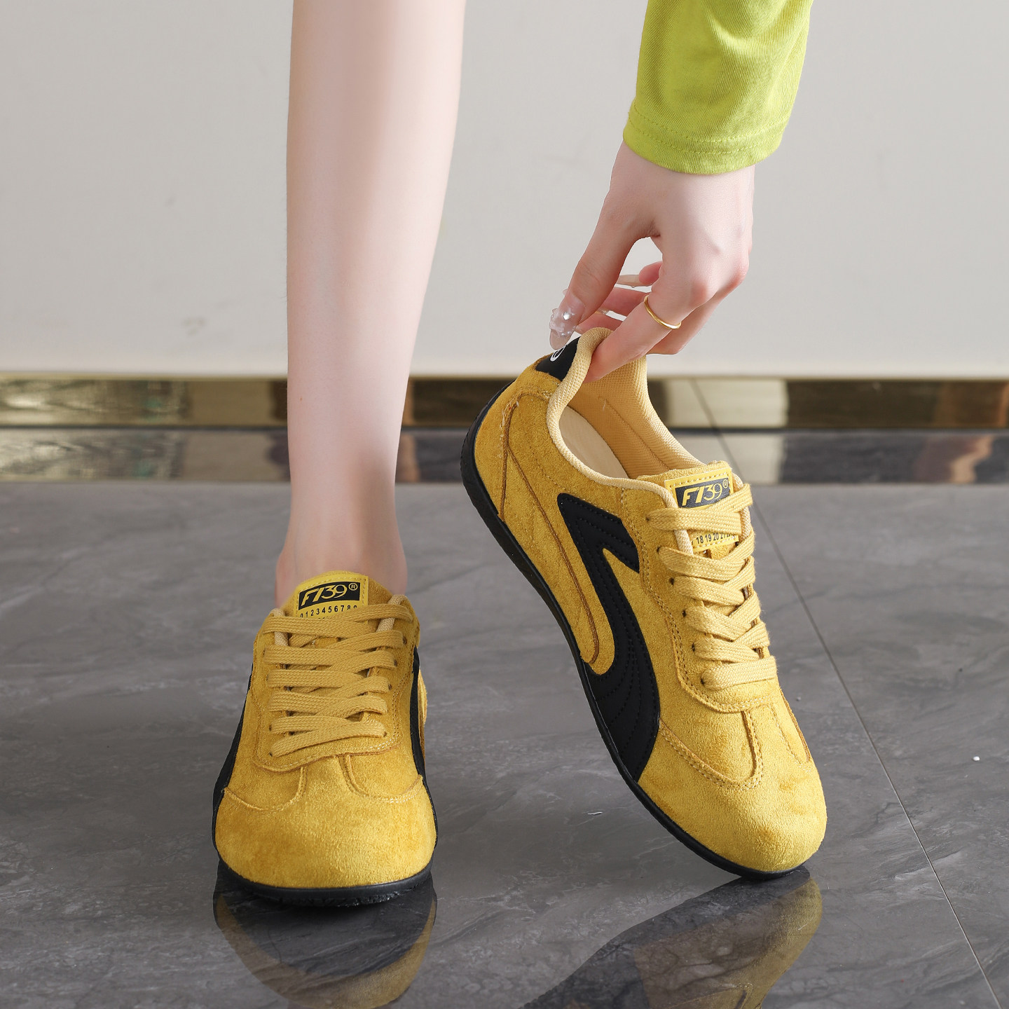 子运动休闲板鞋 拉夏贝尔黄色德训鞋 百搭阿甘鞋 爆款 女2026新款 春季