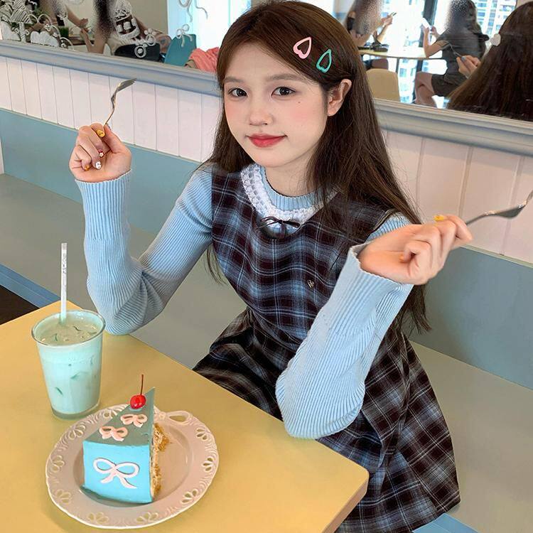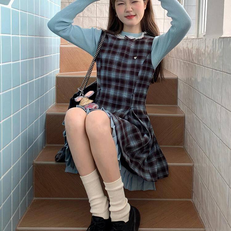 韩系学院风早秋穿搭套装 小个子A字连衣裙chic甜辣两件套 2026新款
