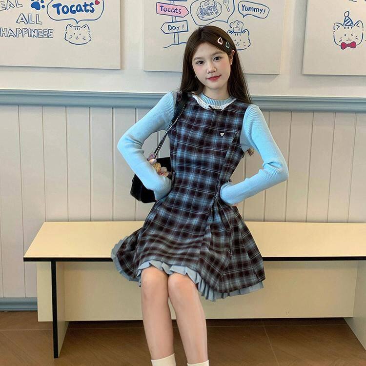 为您提供商品韩系学院风早秋穿搭套装 小个子A字连衣裙chic甜辣两件套 2026新款的详细介绍,