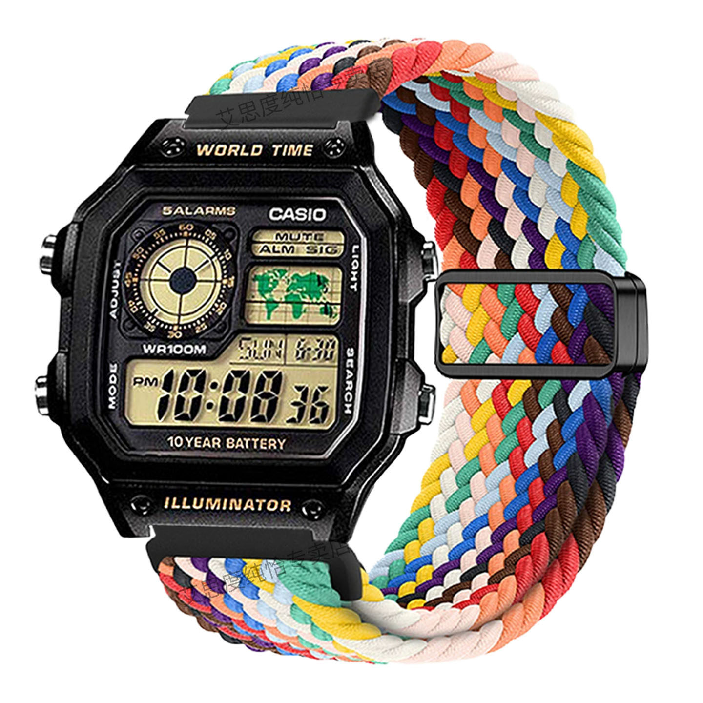 适用卡西欧手表表带AE 1300 1500复古小方块编织磁吸扣表带A158 159透气尼龙替换带CASIO电子表运动腕带 1200由
