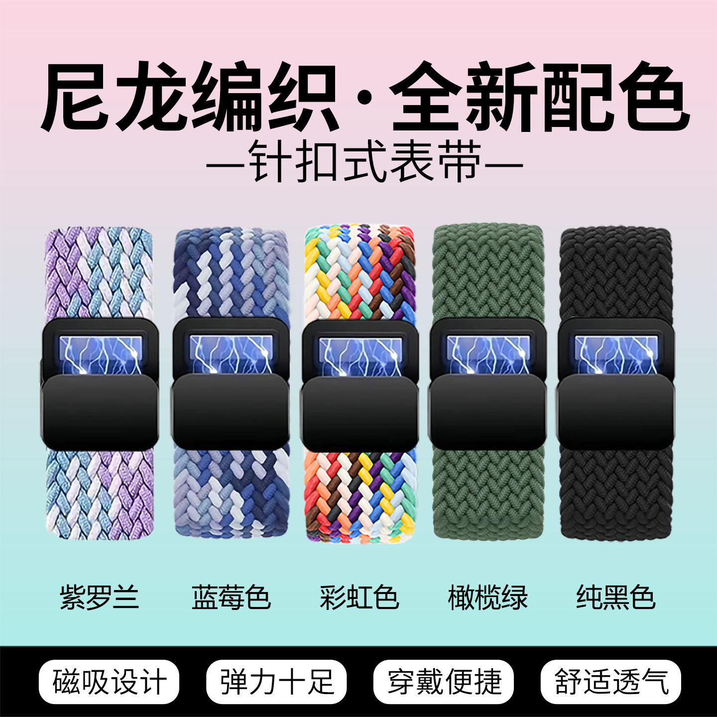 适用华为手环8 11表带磁吸编织智能手表尼龙弹力腕带7NFC版 运动手环透气磁扣表链男女生夏天配件