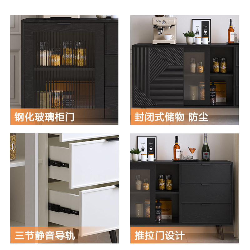 为您提供商品餐边柜靠墙一体黑色储物柜北欧轻奢客厅收纳柜厨房餐厅酒柜茶水柜的详细介绍,