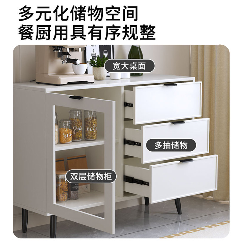 诺桐实木多层板轻奢餐边柜厨房储物柜多功能客厅碗柜靠墙一体橱柜