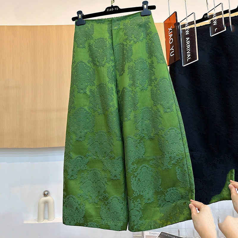 高腰国风显瘦直筒大码 新中式 重工垂感提花阔腿裤 女2026年春秋季 裤由
