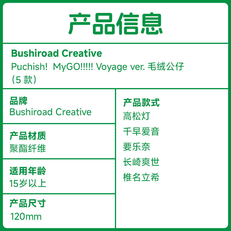 为您提供商品ver. Bushiroad 毛绒公仔 Voyage MyGO Creative Puchish的详细介绍,