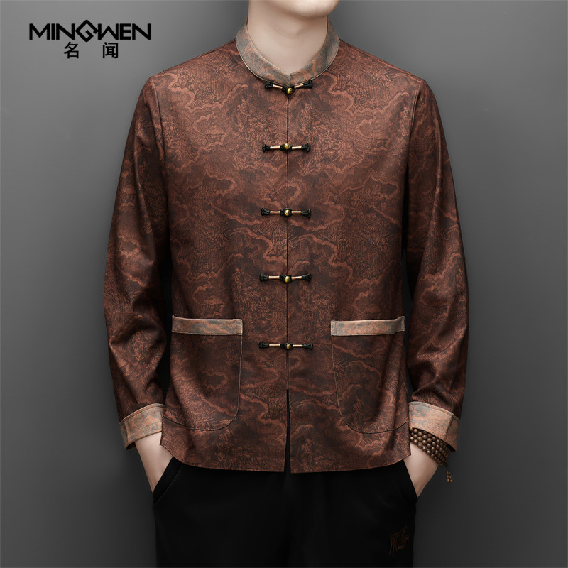 为您提供商品国潮衬衫 印花立领唐装 外套 新中式 高级感中国风复古装 男春秋季 薄款的详细介绍,