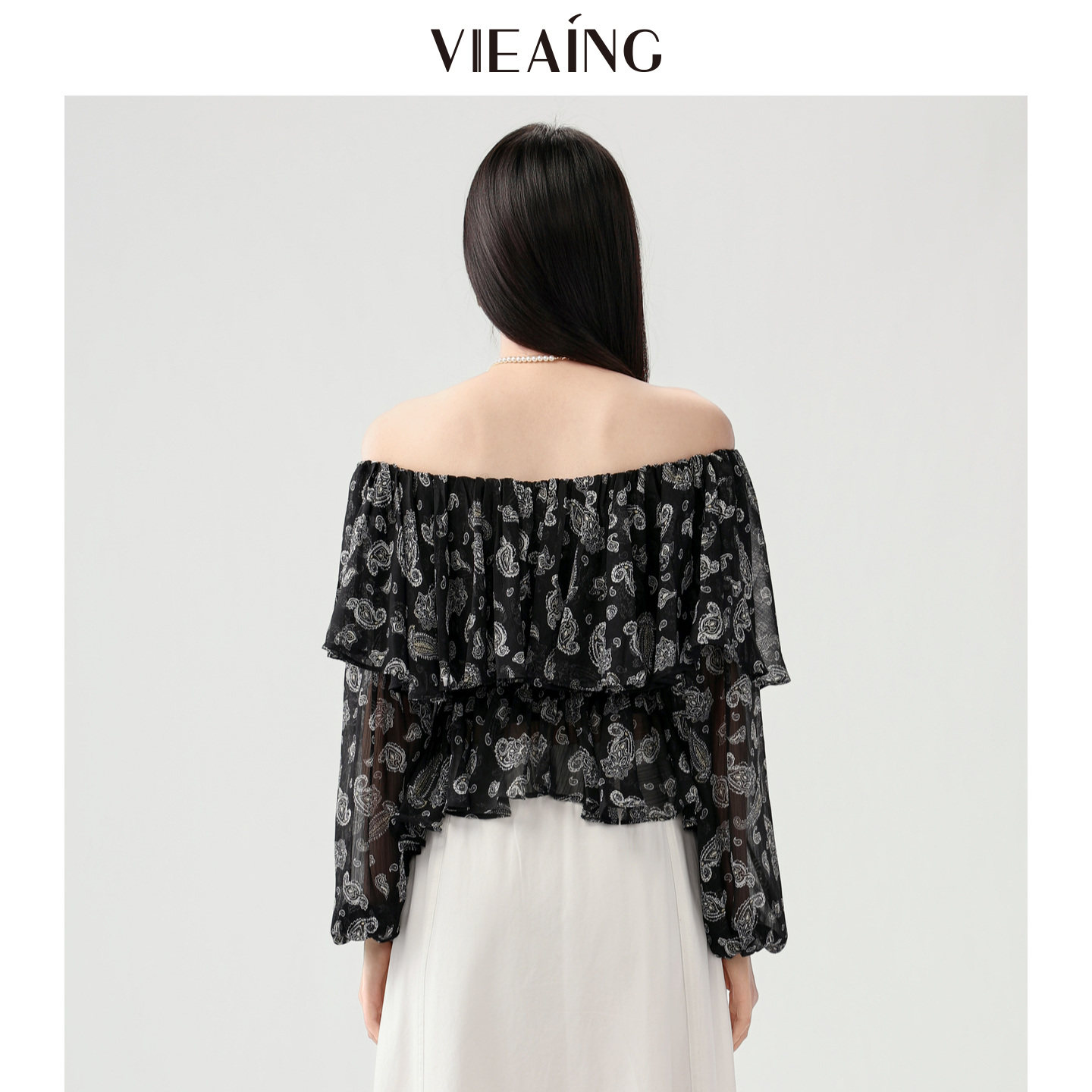 新款 VIEA.ING薇迎商场同款 一字肩衬衫 女2026春季 上衣 荷叶边小衫由