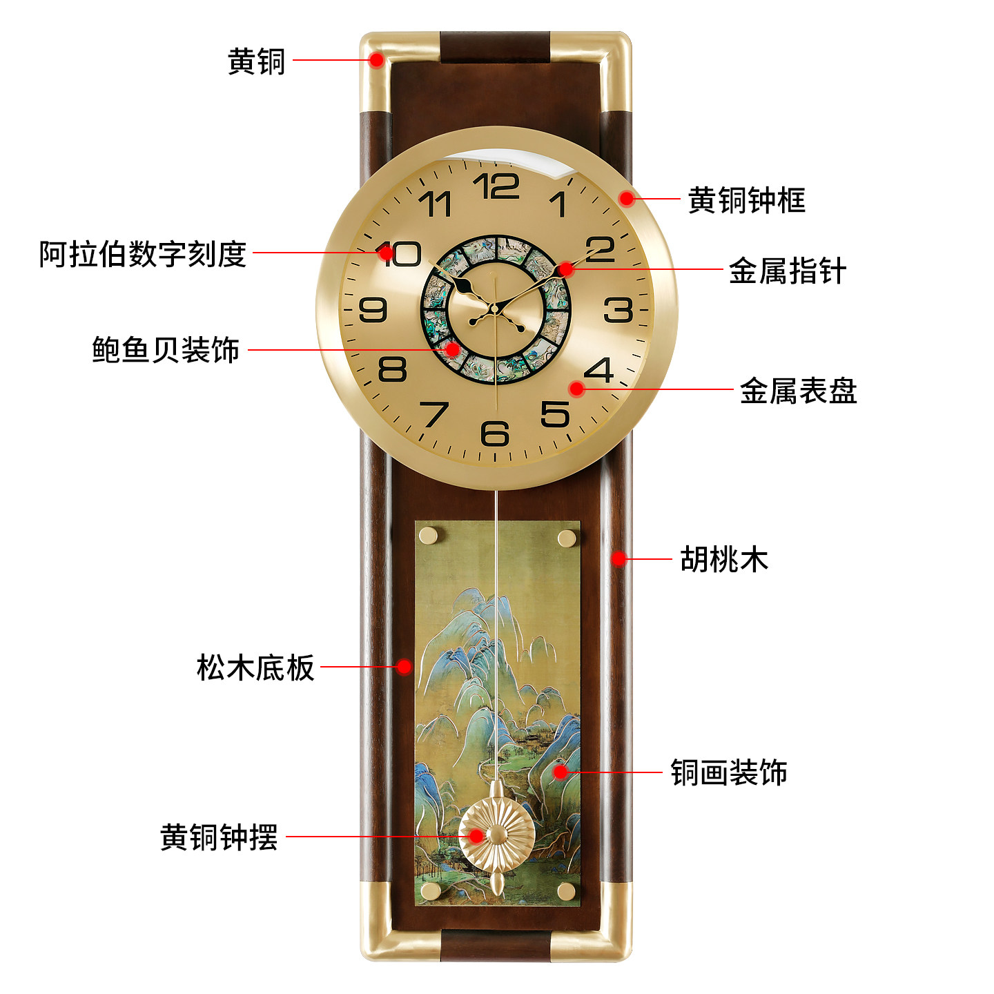 为您提供商品汉时新中式 饰挂墙石英挂表HP8060 黄铜挂钟客厅家用轻奢高端壁挂装的详细介绍,