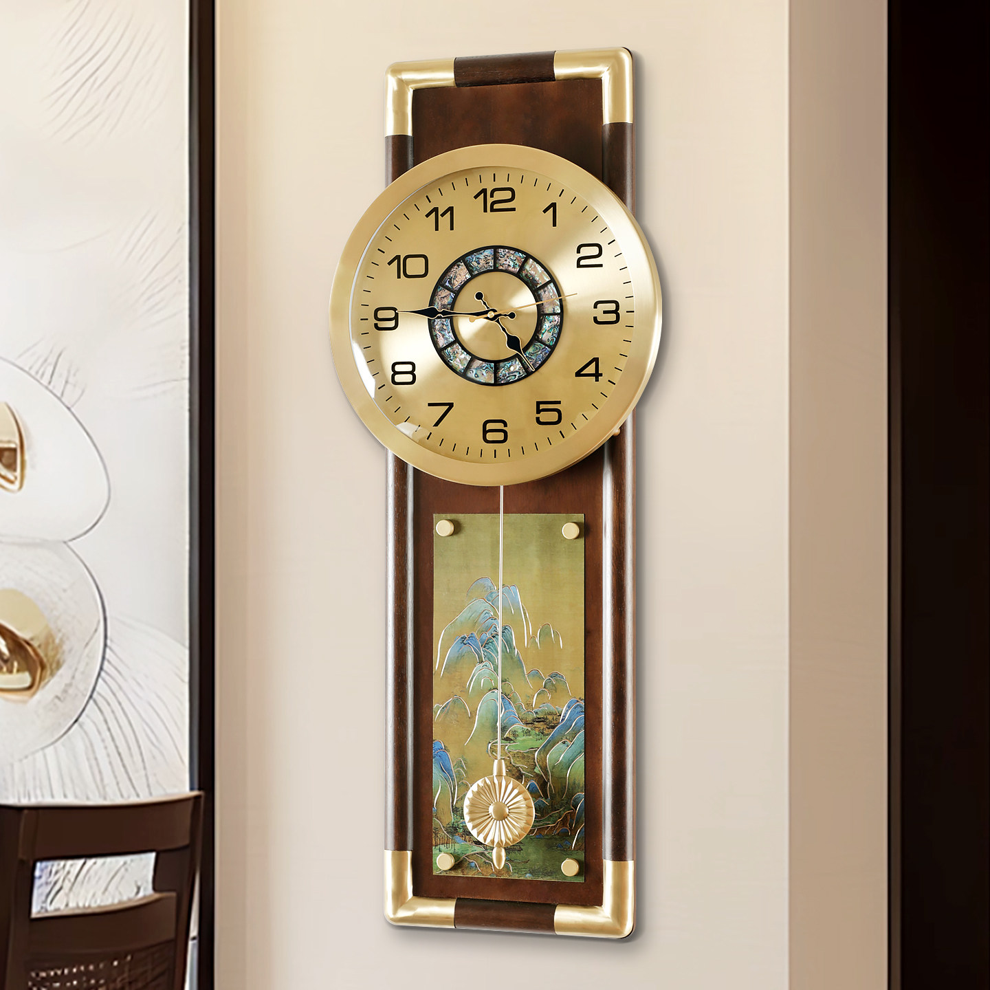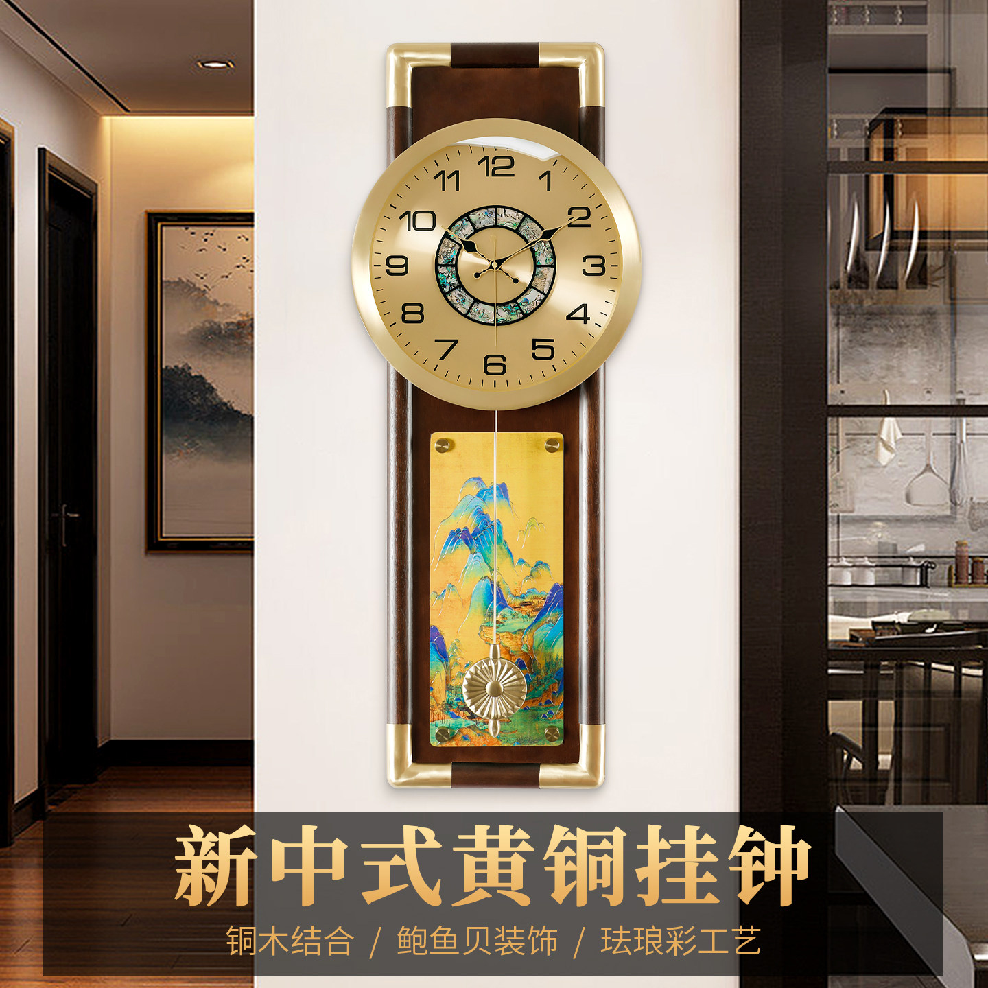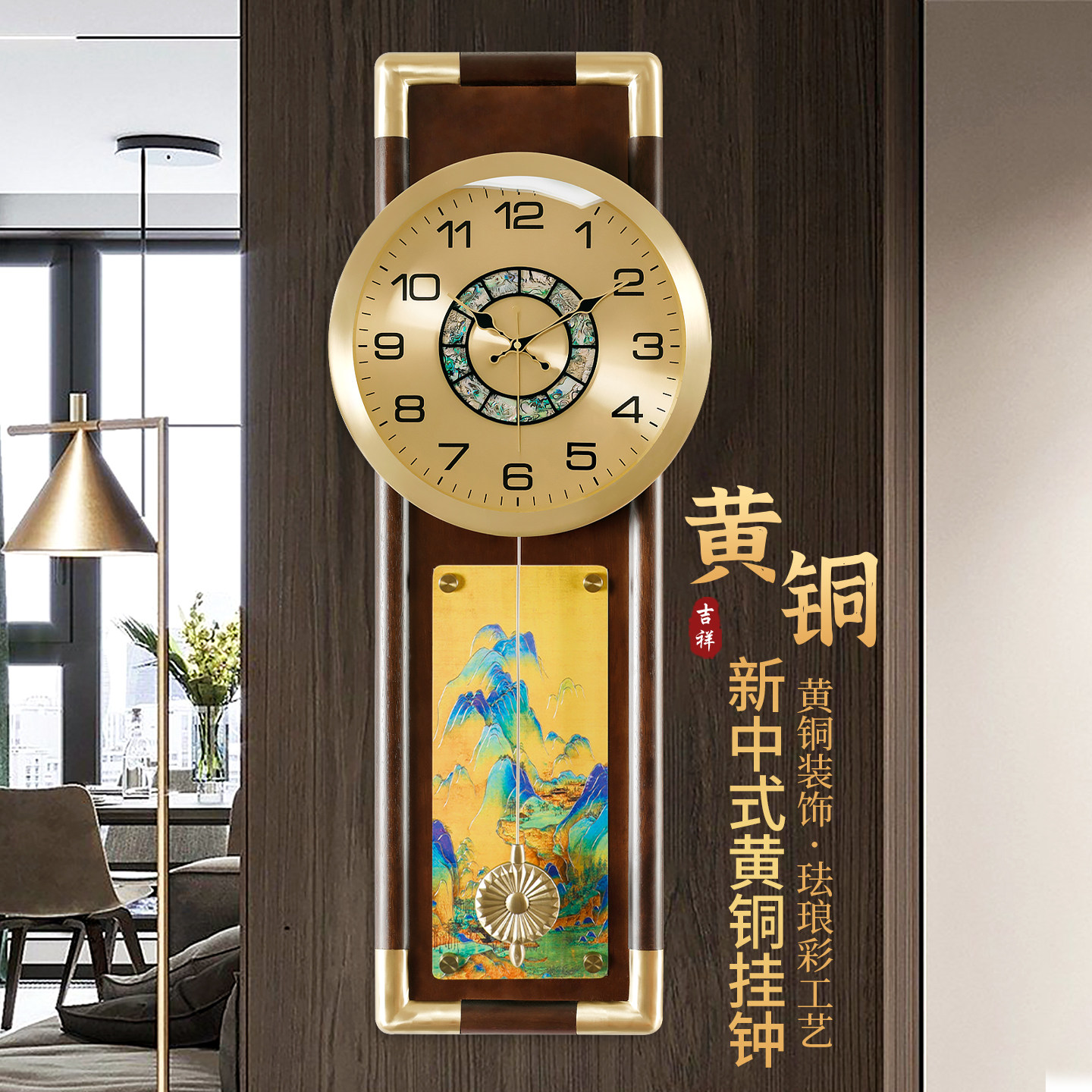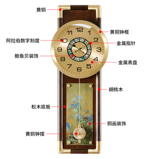 汉时新中式 饰挂墙石英挂表HP8060 黄铜挂钟客厅家用轻奢高端壁挂装由