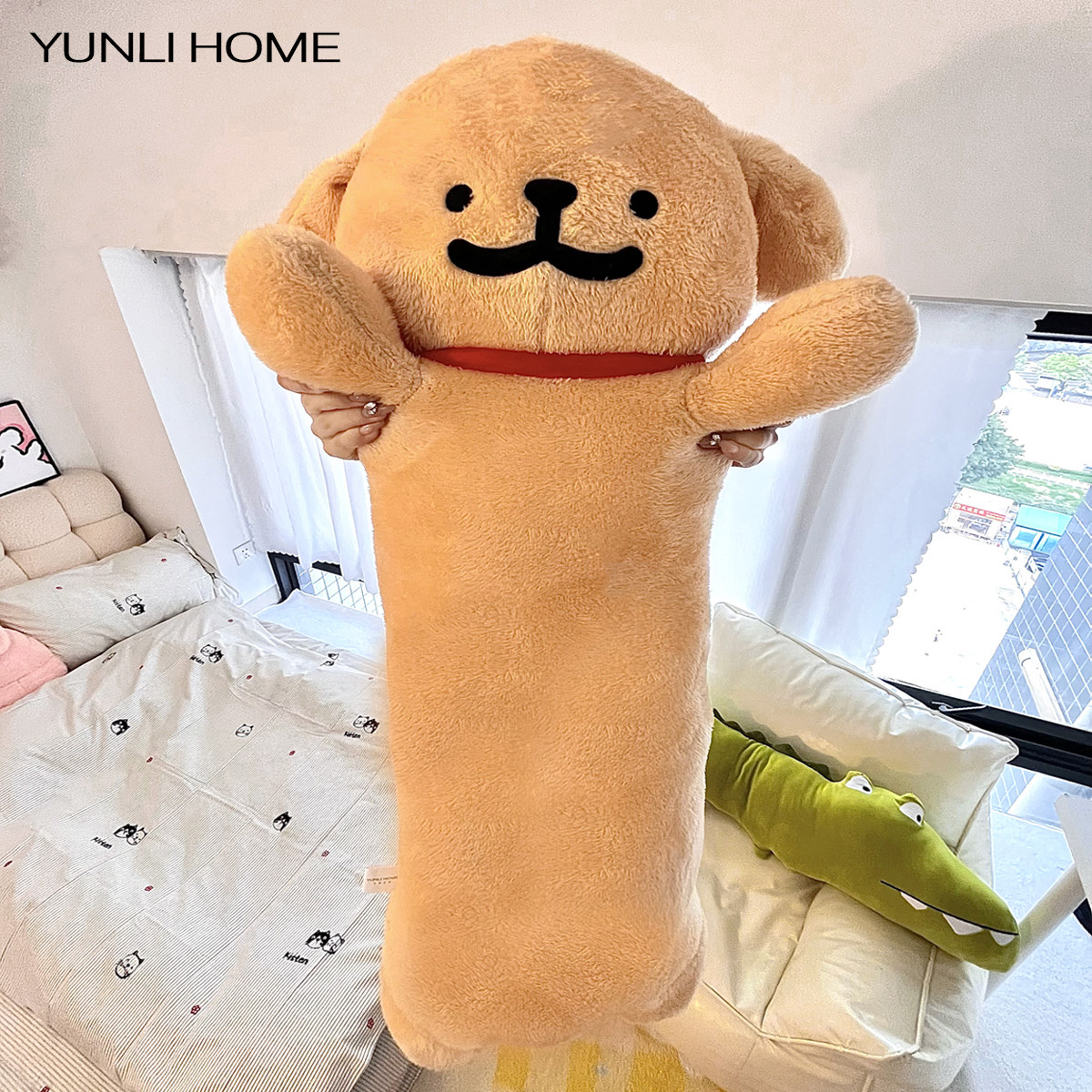线条小狗长条抱枕女生夹腿睡觉专用床上沙发大靠枕儿童毛绒玩偶由